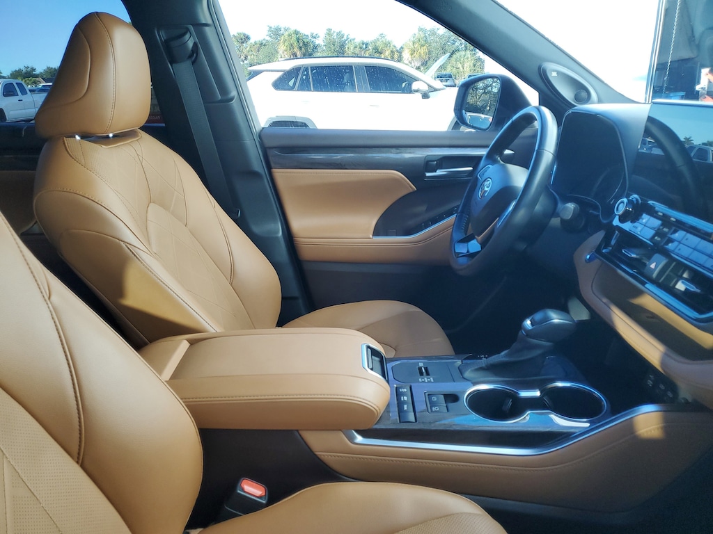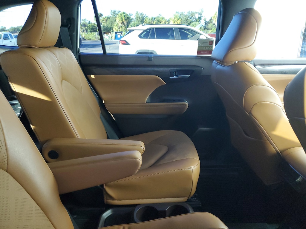 2022 Toyota Highlander Hybrid 2.5L I4 PDI Hybrid DOHC 16V LEV3-SULEV30 186hp. This vehicle also comes equipped with: Toyota Certified Used Hybrids Certified, 2.5L I4 PDI Hybrid DOHC 16V LEV3-SULEV30 186hp, 11 Speakers, 20 Alloy Wheels, 3rd row seats: split-bench, 4-Wheel Disc Brakes, ABS brakes, Air Conditioning, Alloy wheels, AM/FM radio: SiriusXM, Apple CarPlay/Android Auto, Auto High-beam Headlights, Auto-dimming Rear-View mirror, Automatic temperature control, Axle Ratio TBD, Brake assist, Bumpers: body-color, Delay-off headlights, Driver door bin, Driver vanity mirror, Dual front impact airbags, Dual front side impact airbags, Electronic Stability Control, Emergency communication system: Safety Connect with 1-year trial, Four wheel independent suspension, Front anti-roll bar, Front Bucket Seats, Front Center Armrest, Front dual zone A/C, Front fog lights, Front reading lights, Fully automatic headlights, Garage door transmitter: HomeLink, Heads-Up Display, Heated door mirrors, Heated Front Bucket Seats, Heated front seats, Heated rear seats, Heated steering wheel, High Grade LED, Illuminated entry, Knee airbag, Leather Seat Trim, Leather Shift Knob, Low tire pressure warning, Memory seat, Navigation system: Dynamic Navigation (3-year trial), Occupant sensing airbag, Outside temperature display, Overhead airbag, Overhead console, Panic alarm, Panoramic Moonroof, Panoramic View Monitor, Passenger door bin, Passenger vanity mirror, Power door mirrors, Power driver seat, Power Liftgate, Power moonroof, Power passenger seat, Power steering, Power windows, Radio: JBL Premium Audio System, Rain sensing wipers, Rear air conditioning, Rear anti-roll bar, Rear reading lights, Rear window defroster, Rear window wiper, Reclining 3rd row seat, Remote keyless entry, Roof rack: rails only, Security system, Speed control, Speed-sensing steering, Split folding rear seat, Spoiler, Steering wheel mounted audio controls, Telescoping steering wheel, Tilt steering wheel, Traction control, Trip computer, Turn signal indicator mirrors, Variably intermittent wipers, and Ventilated front seats. AWD eCVT Recent Arrival! 35/34 City/Highway MPG