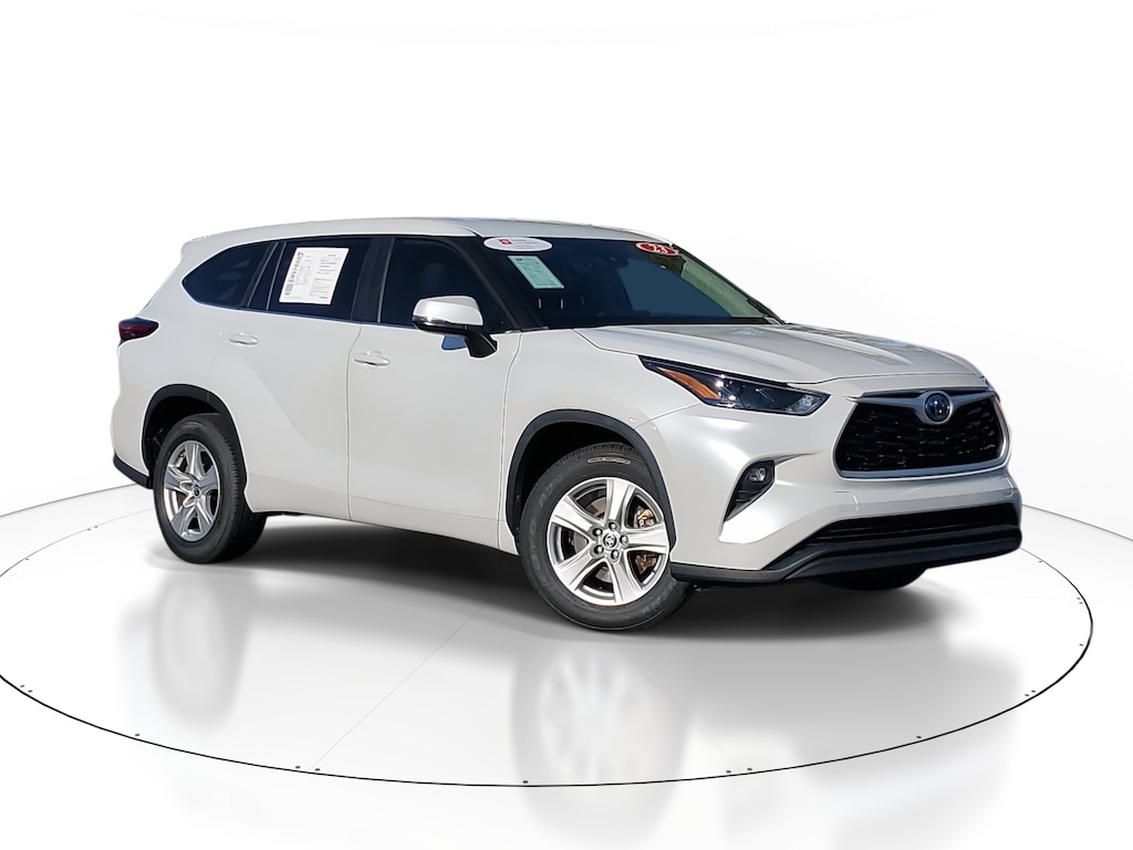 2023 Toyota Highlander Hybrid 2.5L I4 PDI Hybrid DOHC 16V LEV3-SULEV30. This vehicle also comes equipped with: Toyota Certified Used Hybrids Certified,18 Painted Alloy Wheels, 3rd row seats: split-bench, 4-Wheel Disc Brakes, 6 Speakers, ABS brakes, Air Conditioning, Alloy wheels, AM/FM radio: SiriusXM, Apple CarPlay/Android Auto, Auto High-beam Headlights, Automatic temperature control, Axle Ratio: TBD, Brake assist, Bumpers: body-color, Delay-off headlights, Driver door bin, Driver vanity mirror, Dual front impact airbags, Dual front side impact airbags, Electronic Stability Control, Emergency communication system: Safety Connect (up to 10-year trial subscription), Exterior Parking Camera Rear, Fabric Seat Trim, Four wheel independent suspension, Front anti-roll bar, Front Bucket Seats, Front Center Armrest, Front dual zone A/C, Front fog lights, Front reading lights, Fully automatic headlights, Heated door mirrors, Illuminated entry, Knee airbag, Leather Shift Knob, Leather steering wheel, Low tire pressure warning, Occupant sensing airbag, Outside temperature display, Overhead airbag, Overhead console, Panic alarm, Passenger door bin, Passenger vanity mirror, Power door mirrors, Power driver seat, Power Liftgate, Power steering, Power windows, Radio: 8 Toyota Audio Multimedia, Rear air conditioning, Rear anti-roll bar, Rear reading lights, Rear seat center armrest, Rear window defroster, Rear window wiper, Reclining 3rd row seat, Remote keyless entry, Security system, Speed control, Speed-sensing steering, Split folding rear seat, Spoiler, Steering wheel mounted audio controls, Telescoping steering wheel, Tilt steering wheel, Traction control, Trip computer, Turn signal indicator mirrors, and Variably intermittent wipers. FWD eCVT Recent Arrival! 36/35 City/Highway MPG