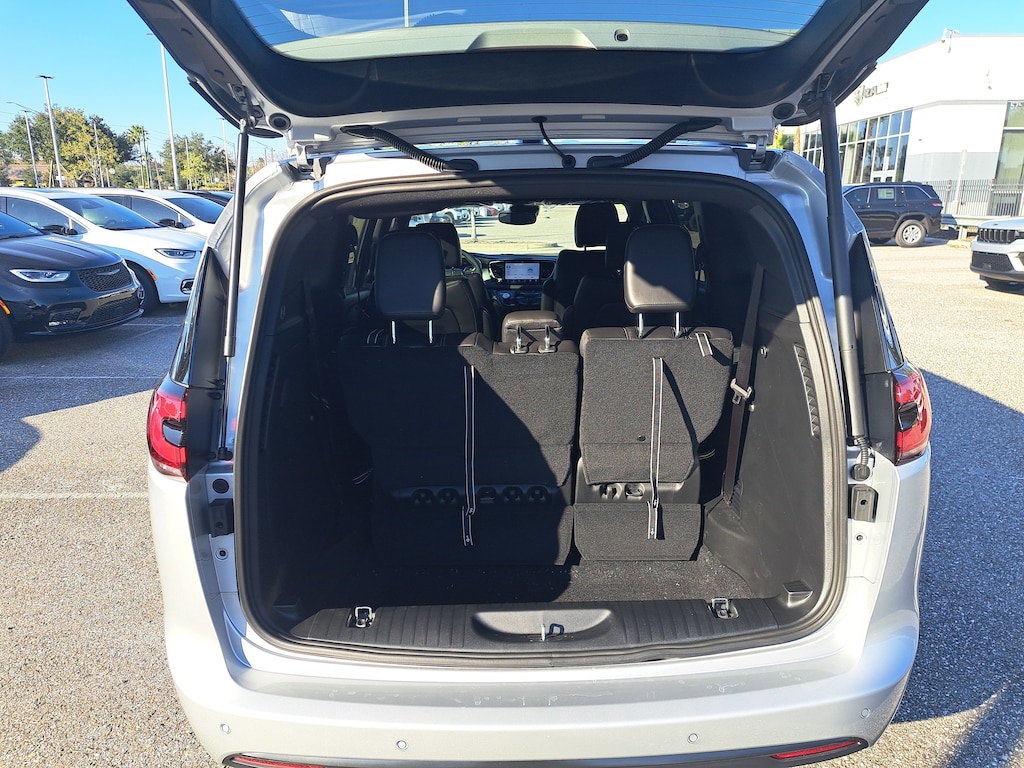 This Vehicle comes equipped with: Quick Order Package 27L, S Appearance Package (Anodized Ink Badging, Black Day Light Opening Moldings, Black Stow 'N Place Roof Rack, Caprice Leatherette with S Logo, Piano Black Interior Accents, Premium Fascia Upper/Lower Grille with Black Surround, Premium Rear Fascia Black, S Badge, and Wheels: 20 x 7.5 S-Model Aluminum Design 1), 10.1 Touchscreen Display, 17 x 7.0 Aluminum Wheels, 3.25 Axle Ratio, 3rd row seats: split-bench, 4-Wheel Disc Brakes, 4G LTE Wi-Fi Hot Spot, 6 Speakers, ABS brakes, Air Conditioning, Alloy wheels, AM/FM radio: SiriusXM, Apple CarPlay, Apple CarPlay/Android Auto, Auto-dimming Rear-View mirror, Automatic temperature control, Black Seats, Brake assist, Bumpers: body-color, Caprice Leatherette Bucket Seats, Compass, Connectivity - US/Canada, Delay-off headlights, Disassociated Touchscreen Display, Driver door bin, Driver vanity mirror, Driver's Seat Mounted Armrest, Dual front impact airbags, Dual front side impact airbags, Electronic Stability Control, Emergency communication system: Chrysler Connect, For Details, Visit DriveUconnect.com, Four wheel independent suspension, Front anti-roll bar, Front Bucket Seats, Front dual zone A/C, Front fog lights, Front reading lights, Fully automatic headlights, Garage door transmitter, Google Android Auto, GPS Antenna Input, Heated door mirrors, Heated front seats, Heated steering wheel, Illuminated entry, Integrated Active Noise Cancellation, Integrated Center Stack Radio, Knee airbag, Low tire pressure warning, Memory seat, MyFlexCare Service Plan, Occupant sensing airbag, Outside temperature display, Overhead airbag, Overhead console, Panic alarm, ParkView Rear Back-Up Camera, Passenger door bin, Passenger seat mounted armrest, Passenger vanity mirror, Power door mirrors, Power driver seat, Power Liftgate, Power steering, Power windows, Radio data system, Radio: Uconnect 5 with 10.1 Display, Rain sensing wipers, Rear air conditioning, Rear reading lights, Rear window defroster, Rear window wiper, Reclining 3rd row seat, Remote keyless entry, Security system, Speed control, Split folding rear seat, Spoiler, Steering wheel mounted audio controls, Tachometer, Telescoping steering wheel, Tilt steering wheel, Touring Suspension, Traction control, Trip computer, Turn signal indicator mirrors, USB Host Flip, Variably intermittent wipers, and VoltmeteR.