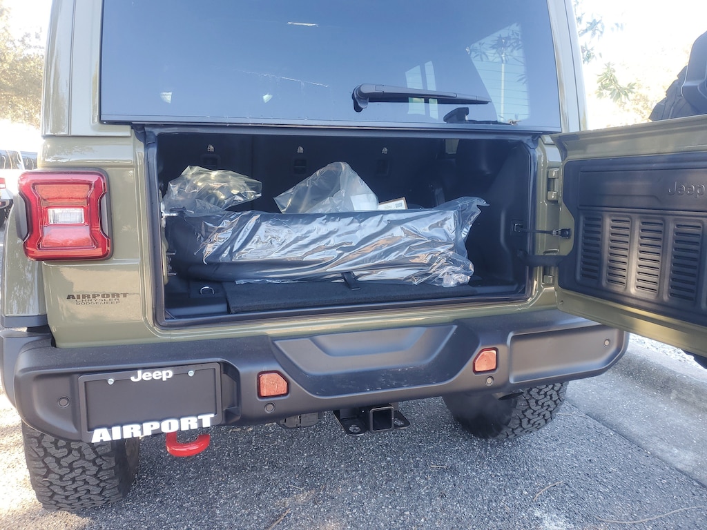 This Vehicle comes equipped with: Convenience Group (Heated Front Seats, Heated Steering Wheel, and Universal Garage Door Opener), Quick Order Package 22R Rubicon, Safety Group (Auto High Beam Headlamp Control, Blind Spot and Cross Path Detection, and ParkSense Rear Park Assist System), 12.3 Touchscreen Display, 4-Wheel Disc Brakes, 4.10 Rear Axle Ratio, 4G LTE Wi-Fi Hot Spot, 8 Speakers, ABS brakes, Air Conditioning, Alloy wheels, Alpine Premium Audio System, AM/FM radio: SiriusXM with 360L, Apple CarPlay, Apple CarPlay/Android Auto, Automatic temperature control, Aux Battery, Auxiliary Switches, Body Color 3-Piece Hard Top, Body Color Rubicon Highline Flare, Brake assist, Class II Receiver Hitch, Cloth Low-Back Bucket Seats, Compass, Connectivity - US/Canada, Delay-off headlights, Driver door bin, Driver vanity mirror, Dual front impact airbags, Dual front side impact airbags, Electronic Stability Control, Emergency communication system: Jeep Connect, For More Info, Call 800-643-2112, Freedom Panel Storage Bag, Front anti-roll bar, Front Bucket Seats, Front Center Armrest w/Storage, Front dual zone A/C, Front fog lights, Front reading lights, Fully automatic headlights, Google Android Auto, Heated door mirrors, Illuminated entry, Integrated Center Stack Radio, Integrated roll-over protection, Jeep Trail Rated Kit, Low tire pressure warning, MOPAR All-Weather Floor Mats, Myflexcare Service Plan, No Soft Top, Non-Lock Fuel Cap Without Discriminator, Occupant sensing airbag, Outside temperature display, Overhead airbag, Panic alarm, ParkView Rear Back-Up Camera, Passenger door bin, Passenger vanity mirror, Performance Suspension, Power door mirrors, Power steering, Power windows, Radio data system, Radio: Uconnect 5 with 12.3 Display, Rear anti-roll bar, Rear reading lights, Rear Window Defroster, Rear Window Wiper/Washer, Remote keyless entry, Security system, SiriusXM Radio Service, SiriusXM with 360L, Speed control, Split folding rear seat, Steering wheel mounted audio controls, Stop-Start Dual Battery System, Tachometer, Telescoping steering wheel, Tilt steering wheel, Traction control, Trip computer, Variably intermittent wipers, Voltmeter, and Wheels: 17 x 7.5 Machined/Painted Black.