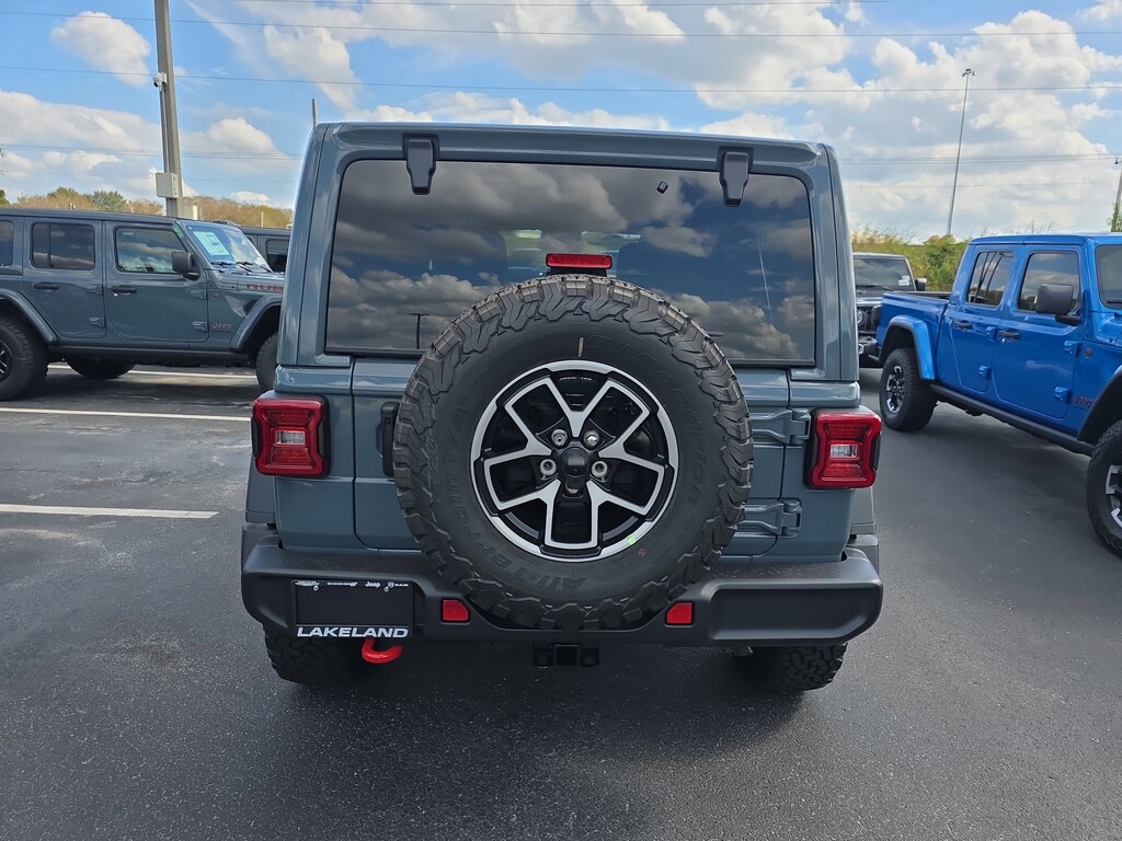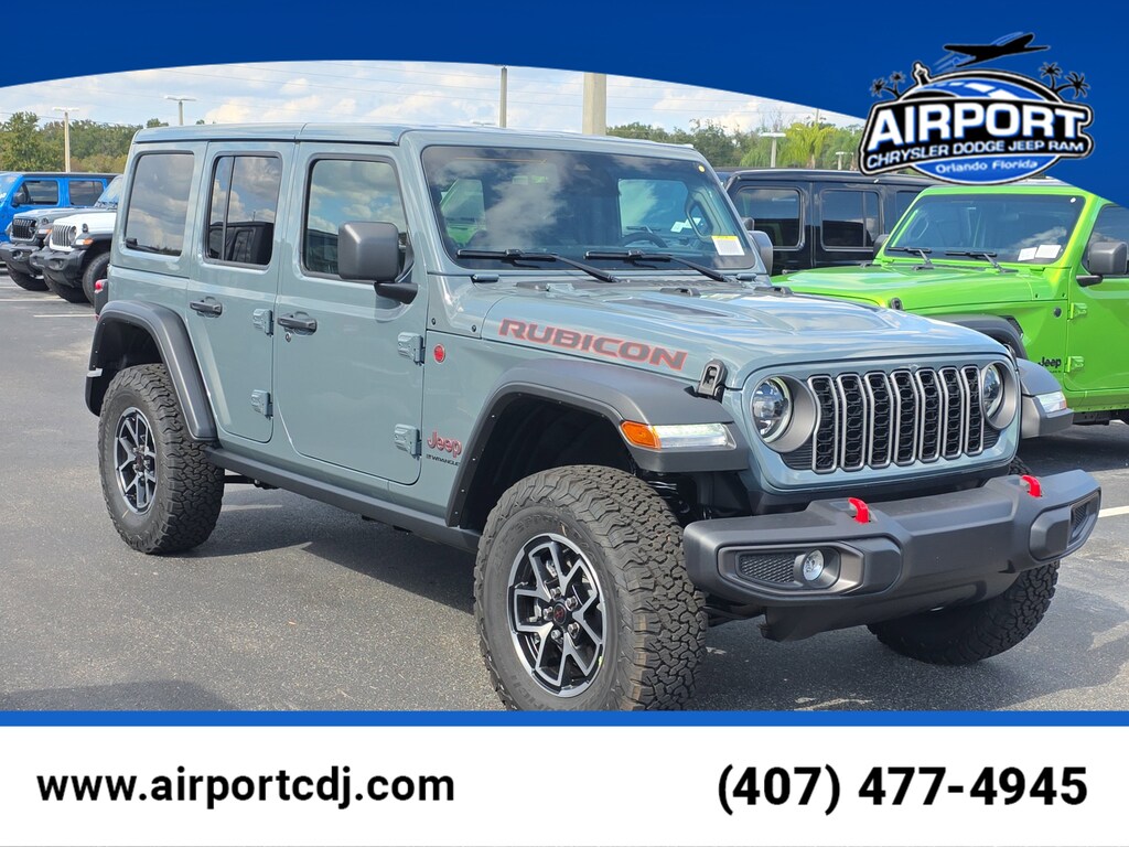 This Vehicle comes equipped with: Convenience Group (Heated Front Seats, Heated Steering Wheel, Remote Start System, and Universal Garage Door Opener), Quick Order Package 24R Rubicon, 12.3 Touchscreen Display, 4-Wheel Disc Brakes, 4.10 Rear Axle Ratio, 4G LTE Wi-Fi Hot Spot, 8 Speakers, ABS brakes, Air Conditioning, Alloy wheels, AM/FM radio: SiriusXM with 360L, Apple CarPlay, Apple CarPlay/Android Auto, Automatic temperature control, Aux Battery, Body Color 3-Piece Hard Top, Brake assist, Cloth Low-Back Bucket Seats, Compass, Connectivity - US/Canada, Delay-off headlights, Driver door bin, Driver vanity mirror, Dual front impact airbags, Dual front side impact airbags, Electronic Stability Control, Emergency communication system: Jeep Connect, Engine Oil Cooler, For More Info, Call 800-643-2112, Freedom Panel Storage Bag, Front anti-roll bar, Front Bucket Seats, Front Center Armrest w/Storage, Front dual zone A/C, Front fog lights, Front reading lights, Fully automatic headlights, Google Android Auto, Heated door mirrors, Illuminated entry, Integrated Center Stack Radio, Integrated roll-over protection, Low tire pressure warning, MOPAR All-Weather Floor Mats, MyFlexCare Service Plan, Non-Lock Fuel Cap w/o Discriminator, Occupant sensing airbag, Outside temperature display, Overhead airbag, Panic alarm, ParkView Rear Back-Up Camera, Passenger door bin, Passenger vanity mirror, Performance Suspension, Power door mirrors, Power steering, Power windows, Radio data system, Radio: Uconnect 5 w/12.3 Display, Rear anti-roll bar, Rear reading lights, Rear Window Defroster, Rear Window Wiper/Washer, Remote keyless entry, Security system, SiriusXM Radio Service, SiriusXM w/360L, Speed control, Split folding rear seat, Steering wheel mounted audio controls, Stop-Start Dual Battery System, Tachometer, Telescoping steering wheel, Tilt steering wheel, Traction control, Trip computer, Variably intermittent wipers, Voltmeter, and Wheels: 17 x 7.5 Machined/Painted Black.