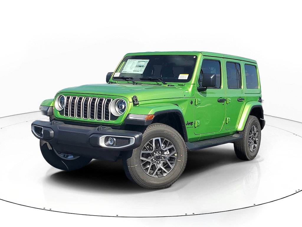 This Vehicle comes equipped with: Quick Order Package 24G, Sahara Popular Equipment Group (12.3 Touchscreen Display, 4G LTE Wi-Fi Hot Spot, Alpine Premium Audio System, Apple CarPlay, Auto High Beam Headlamp Control, Auto-Dimming Rear-View Mirror, Blind Spot & Cross Path Detection, Connected Travel & Traffic Services, Connectivity - US/Canada, For More Info, Call 800-643-2112, Google Android Auto, GPS Navigation, Hard Seat Back, HD Radio, Integrated Center Stack Radio, Integrated Off-Road Camera, Integrated Voice Command w/Bluetooth, Leather Wrapped Park Brake Handle, Leather Wrapped Shift Knob, McKinley Trimmed Seats, ParkSense Rear Park Assist System, Power 4-Way Driver Lumbar Adjust, Power 4-Way Passenger Lumbar Adjust, Power Adjust 8-Way Driver Seat, Power Adjust 8-Way Front Passenger Seat, Radio: Uconnect 5 Nav w/12.3 Display, Side Steps, SiriusXM Radio Service, SiriusXM w/360L, and Universal Garage Door Opener), 3.45 Overall Top Gear Ratio, 4-Wheel Disc Brakes, 8 Speakers, ABS brakes, Air Conditioning, Alloy wheels, AM/FM radio: SiriusXM with 360L, Apple CarPlay/Android Auto, Automatic temperature control, Aux Battery, Body Color 3-Piece Hard Top, Brake assist, Cloth Low-Back Bucket Seats, Compass, Delay-off headlights, Driver door bin, Driver vanity mirror, Dual front impact airbags, Dual front side impact airbags, Electronic Stability Control, Emergency communication system: Jeep Connect, Freedom Panel Storage Bag, Front anti-roll bar, Front Bucket Seats, Front Center Armrest w/Storage, Front dual zone A/C, Front fog lights, Front reading lights, Fully automatic headlights, Heated door mirrors, Heated front seats, Heated steering wheel, Heavy Duty Suspension w/Gas Shocks, Illuminated entry, Integrated roll-over protection, Low tire pressure warning, MyFlexCare Service Plan, Non-Lock Fuel Cap w/o Discriminator, Occupant sensing airbag, Outside temperature display, Overhead airbag, Panic alarm, ParkView Rear Back-Up Camera, Passenger door bin, Passenger vanity mirror, Power door mirrors, Power steering, Power windows, Radio data system, Radio: Uconnect 5 w/12.3 Display, Rear anti-roll bar, Rear reading lights, Rear Window Defroster, Rear Window Wiper/Washer, Remote keyless entry, Security system, Speed control, Split folding rear seat, Steering wheel mounted audio controls, Stop-Start Dual Battery System, Tachometer, Telescoping steering wheel, Tilt steering wheel, Traction control, Trip computer, Variably intermittent wipers, Voltmeter, and Wheels: 18 x 7.5 Machine/Painted Gray.