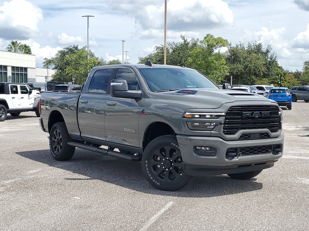 This Vehicle comes equipped with: Laramie Level 1 Plus Equipment Group (#1 Seat Foam Cushion, 115V Auxiliary Rear Power Outlet, 2 Way Rear Headrest Seat, 2nd Row In Floor Storage Bins, 4 Way Front Headrests, Active Lane Management System, Adaptive Steering System, Anti-Spin Differential Rear Axle, Auto Adjust In Reverse Exterior Mirrors, Auto Dim Exterior Mirror, Auto High Beam Headlamp Control, Auto Power-Folding Mirrors, Auto-Dimming Exterior Passenger Mirror, Bucket Seats, Chrome Exterior Mirrors, CTR Stop Lamp w/Cargo View Camera, Drowsy Driver Detection, Dual Wireless Charging Pad, Exterior Mirrors Courtesy Lamps, Exterior Mirrors w/Heating Element, Exterior Mirrors w/Memory, Exterior Mirrors w/Supplemental Signals, Foam Bottle Insert (Door Trim Panel), Folding Flat Load Floor Storage, Forward & Reverse Utility Lights, Front Seat Back Map Pockets, Full Length Upgraded Floor Console, Heated Front Seats, Heated Second Row Seats, Heated Steering Wheel, High Back Seats, Leather Trimmed Bucket Seats, LED Bed Lighting, Mirror Running Lights, MOPAR Deployable Bed Step, MOPAR Spray In Bedliner, Power 2-Way Driver Lumbar Adjust, Power 2-Way Passenger Lumbar Adjust, Power Adjust 8-Way Driver Seat, Power Adjust 8-Way Front Passenger Seat, Power Adjust Mirrors, Power Adjustable Pedals w/Memory, Power Heated Fold Telescopic Mirrors w/Memory, Power Telescoping Mirrors, Power-Adjustable Convex Aux Mirrors, Radio/Driver Seat/Mirrors/Pedals Memory, Rain Sensitive Windshield Wipers, Rear 60/40 Folding Seat, Remote Tailgate Release, Traffic Sign Recognition, and Ventilated Front Seats), Night Edition (Black Exterior Mirrors, Black Exterior Truck Badging, Black Wheel Center Hub, Body Color Grille-Surround, Gloss Black Grille Billets/Accents, Sport Performance Hood, and Wheels: 20 x 8.0 Black Painted Aluminum), Quick Order Package 24H Laramie, 10 Speakers, 4-Wheel Disc Brakes, 4G LTE Wi-Fi Hot Spot, 5th Wheel/Gooseneck Towing Prep Group, ABS brakes, Air Conditioning, Alexa Built-In, Alloy wheels, AM/FM radio: SiriusXM with 360L, Apple CarPlay, Apple CarPlay/Android Auto, Auto-dimming Rear-View mirror, Automatic temperature control, Brake assist, Bumpers: body-color, Compass, Connected Travel & Traffic Services, Connectivity - US/Canada, Delay-off headlights, Delete Deployable Bed Step, Disassociated Touchscreen Display, Driver door bin, Driver vanity mirror, Dual front impact airbags, Dual front side impact airbags, Electronic Stability Control, Emergency Vehicle Alert System (EVAS), For Details, Visit DriveUconnect.com, For More Info, Call 800-643-2112, Front anti-roll bar, Front Center Armrest w/Storage, Front dual zone A/C, Front fog lights, Front License Plate Bracket, Front reading lights, Fully automatic headlights, Garage door transmitter, Global Telematics Box Module (TBM), Google Android Auto, GPS Antenna Input, GPS Navigation, HD Radio, Heated door mirrors, Heated front seats, Heated steering wheel, Illuminated entry, Integrated Voice Command w/Bluetooth, Leather Trim 40/20/40 Bench Seat, Low tire pressure warning, Manufacturer's Statement of Origin, MOPAR Front & Rear Rubber Floor Mats, MyFlexCare Service Diesel, Navigation System, Occupant sensing airbag, Off-Road Info Pages, Outside temperature display, Overhead airbag, Overhead console, Painted Flat Wheel-to-Wheel Side Steps, Panic alarm, ParkView Rear Back-Up Camera, Passenger door bin, Passenger vanity mirror, Power door mirrors, Power driver seat, Power passenger seat, Power steering, Power windows, Radio data system, Radio: Uconnect 5 Nav w/12.0 Display, Rear anti-roll bar, Rear reading lights, Rear seat center armrest, Rear step bumper, Rear window defroster, Remote keyless entry, Security system, Selectable Tire Fill Alert, SiriusXM Radio Service, SiriusXM w/360L, Speed control, Split folding rear seat, Steering wheel mounted audio controls, Tachometer, Tilt steering wheel, Traction control,