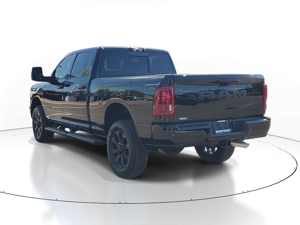 This Vehicle comes equipped with: Laramie Level 1 Plus Equipment Group (#1 Seat Foam Cushion, 115V Auxiliary Rear Power Outlet, 2 Way Rear Headrest Seat, 2nd Row in Floor Storage Bins, 4 Way Front Headrests, Active Lane Management System, Adaptive Steering System, Auto Adjust in Reverse Exterior Mirrors, Auto Dimming Exterior Passenger Mirror, Auto High Beam Headlamp Control, Auto Power-Folding Mirrors, Auto-Dimming Exterior Mirrors, Bucket Seats, Center Stop Lamp with Cargo View Camera, Chrome Exterior Mirrors, Drowsy Driver Detection, Dual Wireless Charging Pad, Exterior Mirrors Courtesy Lamps, Exterior Mirrors with Heating Element, Exterior Mirrors with Memory, Exterior Mirrors with Supplemental Signals, Foam Bottle Insert (door Trim Panel), Folding Flat Load Floor Storage, Forward and Reverse Utility Lights, Front Seat Back Map Pockets, Full Length Upgraded Floor Console, Heated Front Seats, Heated Steering Wheel, High Back Seats, Leather Trimmed Bucket Seats, LED Bed Lighting, Mirror Running Lights, MOPAR Deployable Bed Step, MOPAR Spray in Bedliner, Power 2-Way Driver Lumbar Adjust, Power 2-Way Passenger Lumbar Adjust, Power Adjust 8-Way Driver Seat, Power Adjust 8-Way Front Passenger Seat, Power Adjust Mirrors, Power Adjustable Pedals with Memory, Power Heat Fold Memory Telescopic Mirrors, Power Telescoping Mirrors, Power-Adjustable Convex Aux Mirrors, Radio/Driver Seat/Mirrors/Pedals Memory, Rain Sensitive Windshield Wipers, Rear 60/40 Folding Seat, Remote Tailgate Release, Traffic Sign Recognition, and Ventilated Front Seats), Night Edition (Black Exterior Mirrors, Black Exterior Truck Badging, Black Wheel Center Hub, Body Color Grille Surround, Gloss Black Grille Billets/Accents, Sport Performance Hood, and Wheels: 20 x 8.0 Black Painted Aluminum), Quick Order Package 24H Laramie, 10 Speakers, 4-Wheel Disc Brakes, 4G LTE Wi-Fi Hot Spot, 5th Wheel/Gooseneck Towing Prep Group, ABS brakes, Air Conditioning, Alexa Built-in, Alloy wheels, AM/FM radio: SiriusXM with 360L, Apple CarPlay, Apple CarPlay/Android Auto, Auto-dimming Rear-View mirror, Automatic temperature control, Brake assist, Bumpers: body-color, Clearance Lamps, Compass, Connected Travel and Traffic Services, Connectivity - US/Canada, Delay-off headlights, Delete Deployable Bed Step, Disassociated Touchscreen Display, Driver door bin, Driver vanity mirror, Dual front impact airbags, Dual front side impact airbags, Electronic Stability Control, Emergency Vehicle Alert System (EVAS), Front anti-roll bar, Front Center Armrest w/Storage, Front dual zone A/C, Front fog lights, Front License Plate Bracket, Front reading lights, Fully automatic headlights, Garage door transmitter, Global Telematics Box Module, Google Android Auto, GPS Antenna Input, GPS Navigation, HD Radio, Heated door mirrors, Heated front seats, Heated steering wheel, Illuminated entry, Integrated Voice Command with Bluetooth, Leather Trim 40/20/40 Bench Seat, Low tire pressure warning, Manufacturer's Statement of Origin, MOPAR Front and Rear Rubber Floor Mats, MyFlexCare Service Diesel, Navigation System, Occupant sensing airbag, Off-Road Information Pages, Outside temperature display, Overhead airbag, Overhead console, Painted Flat Wheel-to-Wheel Side Steps, Panic alarm, ParkView Rear Back-Up Camera, Passenger door bin, Passenger vanity mirror, Power door mirrors, Power driver seat, Power passenger seat, Power steering, Power windows, Radio data system, Radio: Uconnect 5 Navigation with 12.0 Display, Rear reading lights, Rear seat center armrest, Rear step bumper, Rear window defroster, Remote keyless entry, Security system, Selectable Tire Fill Alert, SiriusXM Radio Service, SiriusXM with 360L, Speed control, Split folding rear seat, Steering wheel mounted audio controls, Tachometer, Tilt steering wheel, Traction control, Trailer Tow Pages, Trip computer, Turn signal indicator mirrors, Variably intermitt