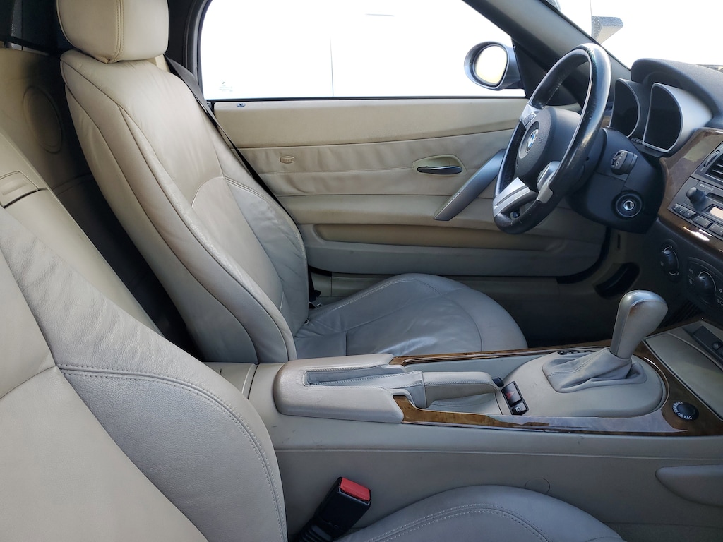 2005 BMW Z4 3.0L I6 DOHC 24V This vehicle also comes equipped with: 10 Speakers, 17 x 8 Twin Spoke Cast Alloy (Style 103) Wheels, 4-Wheel Disc Brakes, 6-Way Manually Adjustable Front Sport Seats, ABS brakes, Air Conditioning, Alloy wheels, AM/FM radio, Automatic temperature control, Brake assist, Bumpers: body-color, CD player, Convertible roof lining, Delay-off headlights, Driver door bin, Driver vanity mirror, Dual front impact airbags, Dual front side impact airbags, Electronic Stability Control, Four wheel independent suspension, Front anti-roll bar, Front Bucket Seats, Front Center Armrest, Front fog lights, Front reading lights, Fully automatic headlights, Glass rear window, Heated door mirrors, High Performance Leather Upholstery, Illuminated entry, Integrated roll-over protection, Knee airbag, Leather Shift Knob, Leather steering wheel, Low tire pressure warning, Occupant sensing airbag, Outside temperature display, Panic alarm, Passenger cancellable airbag, Passenger door bin, Passenger vanity mirror, Power door mirrors, Power steering, Power windows, Prem Sound System w/Upgraded Audio Power, Radio data system, Rain sensing wipers, Rear anti-roll bar, Rear window defroster, Remote keyless entry, Speed control, Speed-sensing steering, Speed-Sensitive Wipers, Sport steering wheel, Tachometer, Telescoping steering wheel, Tilt steering wheel, Traction control, Trip computer, and Variably intermittent wipers. RWD Recent Arrival! 21/29 City/Highway MPG