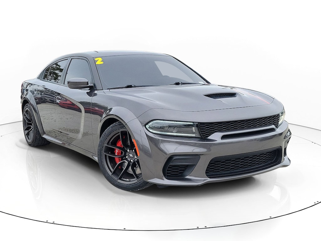 THIS VEHCILE INCLUDES THE FOLLOWING OPTIONS AND FEATURES: Driver Convenience Group (Bi-Function HID Projector Head Lamps), Plus Group (Auto Adjust In Reverse Exterior Mirrors, Auto-Dimming Exterior Driver Mirror, Black-Edged Premium Floormats, Blind Spot & Cross Path Detection, Blind Spot Memory/Power/Heat Mirror, Body Color Exterior Mirrors, Driver & Passenger Lower LED Lamps, Exterior Mirrors Courtesy Lamps, Exterior Mirrors w/Heating Element, Front Overhead LED Lighting, Heated 2nd Row Seats, Heated Front Seats, Illuminated Rear Cupholders, Power 2-Way Driver Lumbar Adjust, Power 2-Way Passenger Lumbar Adjust, Power Front Driver/Passenger Seats, Power Tilt/Telescope Steering Column, Premium-Stitched Dash Panel, Radio/Driver Seat/Mirrors Memory, Rear Seat Armrest w/Storage Cupholder, Scat Pack Logo Nappa/Alcantara Seat, and Ventilated Front Seats), Quick Order Package 21V Scat Pack Widebody (Adaptive Damping Suspension, All Speed Traction Control, Body Color Fender Flares, Brembo 6-Pot Fixed Front Caliper Brakes, Flat-Bottom Steering Wheel, Performance Shift Indicator, Rhombi 2-Pc Wheel Center Cap, and Widebody Competition Suspension), Widebody Package, 4-Wheel Disc Brakes, 6 Speakers, ABS brakes, Air Conditioning, Alloy wheels, AM/FM radio: SiriusXM, Anti-whiplash front head restraints, Apple CarPlay, Apple CarPlay/Android Auto, Auto-dimming Rear-View mirror, Automatic temperature control, Brake assist, Brake Calipers - Red, Bumpers: body-color, Cloth Performance Seats w/Heat, Compass, Delay-off headlights, Driver door bin, Driver vanity mirror, Dual front impact airbags, Dual front side impact airbags, Electronic Stability Control, Emergency communication system: SiriusXM Guardian, Four wheel independent suspension, Front anti-roll bar, Front Bucket Seats, Front Center Armrest, Front dual zone A/C, Front fog lights, Front reading lights, Fully automatic headlights, Garage door transmitter: HomeLink, Google Android Auto, GPS Antenna Input, Heated door mirrors, Heated front seats, Heated steering wheel, Illuminated entry, Integrated Center Stack Radio, Integrated Voice Command w/Bluetooth, Knee airbag, Leather Shift Knob, Low tire pressure warning, Media Hub (2 USB, AUX), Occupant sensing airbag, Outside temperature display, Overhead airbag, Overhead console, Panic alarm, ParkView Rear Back-Up Camera, Passenger door bin, Passenger vanity mirror, Power door mirrors, Power driver seat, Power steering, Power windows, Radio: Uconnect 4C w/8.4" Display, Rear anti-roll bar, Rear reading lights, Rear seat center armrest, Rear window defroster, Remote keyless entry, Security system, Speed control, Speed-Sensitive Wipers, Split folding rear seat, Spoiler, Sport steering wheel, Steering wheel mounted audio controls, Tachometer, Telescoping steering wheel, Tilt steering wheel, Traction control, Trip computer, USB Host Flip, Variably intermittent wipers, and Wheels: 20" x 9" Lo Gloss Granite Crystal.
