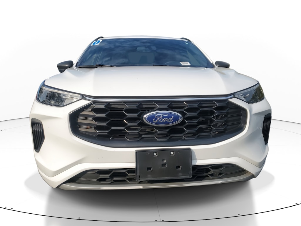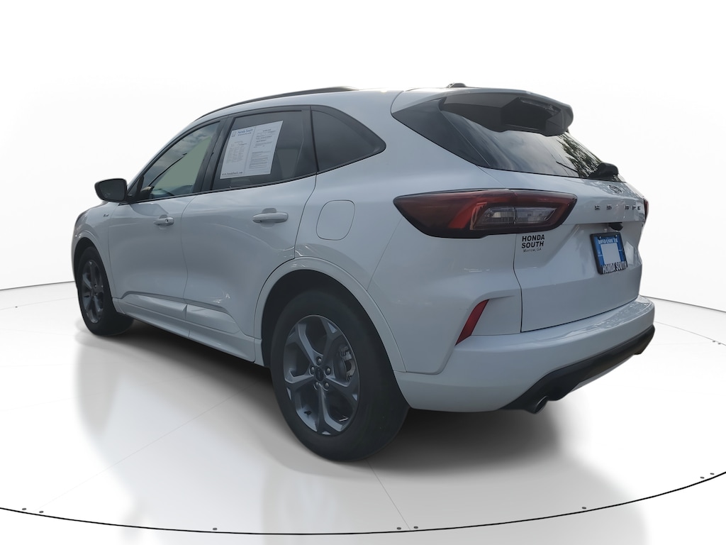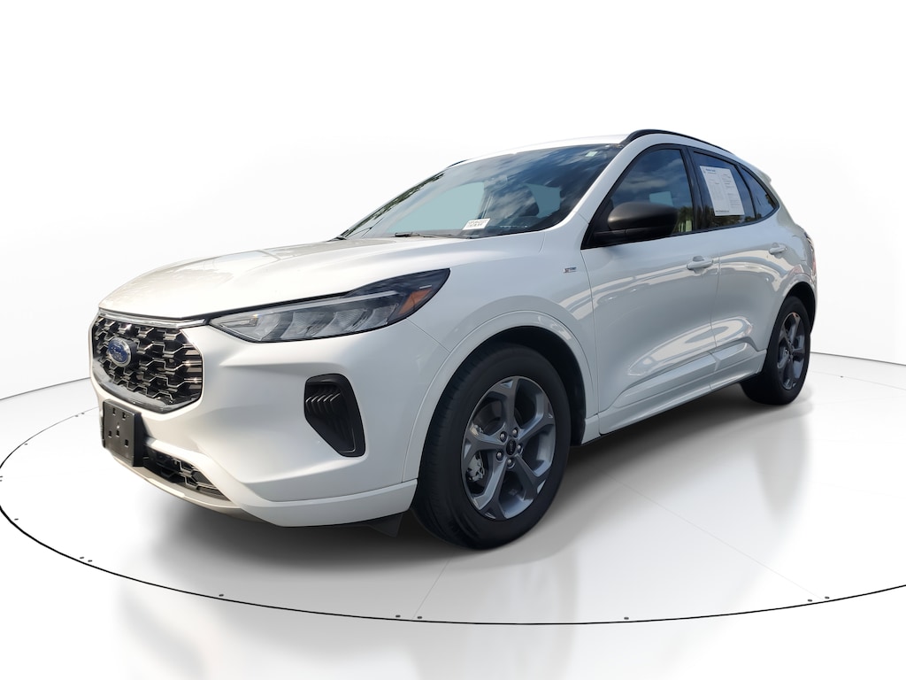 This Vehicle includes the following Options and Features Equipment Group 300A, Escape ST-Line, 4D Sport Utility, 1.5L EcoBoost, 8-Speed Automatic, FWD, Oxford White, Ebony w/Cloth Front Bucket Seats, 3.81 Axle Ratio, 4-Wheel Disc Brakes, 6 Speakers, ABS brakes, Air Conditioning, Alloy wheels, AM/FM radio: SiriusXM, AM/FM Stereo, Auto High-beam Headlights, Automatic temperature control, Brake assist, Bumpers: body-color, Compass, Delay-off headlights, Driver door bin, Driver vanity mirror, Dual front impact airbags, Dual front side impact airbags, Electronic Fuel Door Release, Electronic Stability Control, Emergency communication system: SYNC 4 911 Assist, Exterior Parking Camera Rear, FordPass Connect, Four wheel independent suspension, Front anti-roll bar, Front Bucket Seats, Front Center Armrest, Front dual zone A/C, Front License Plate Bracket, Front reading lights, Fully automatic headlights, Illuminated entry, Knee airbag, Low tire pressure warning, Neutral Towing Capability, Occupant sensing airbag, Outside temperature display, Overhead airbag, Overhead console, Panic alarm, Passenger door bin, Passenger vanity mirror, Pedestrian Alert Sounder, Power door mirrors, Power driver seat, Power Liftgate, Power steering, Power windows, Radio data system, Rear anti-roll bar, Rear reading lights, Rear seat center armrest, Rear window defroster, Rear window wiper, Remote keyless entry, Speed control, Speed-sensing steering, Speed-Sensitive Wipers, Split folding rear seat, Spoiler, Sport steering wheel, Steering wheel mounted audio controls, SYNC 4, Tachometer, Telescoping steering wheel, Tilt steering wheel, Traction control, Trip computer, Variably intermittent wipers, Vinyl/Cloth Front Sport Contour Bucket Seats, and Wheels: 18" Rock Metallic Painted Aluminum.