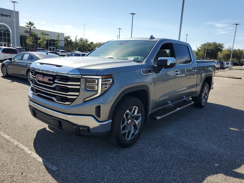 2023 GMC Sierra 1500 SLT Sterling Metallic 4WD 10-Speed Automatic EcoTec3 5.3L V8 10-Speed Automatic, 4WD, Dark Walnut/Slate Leather.