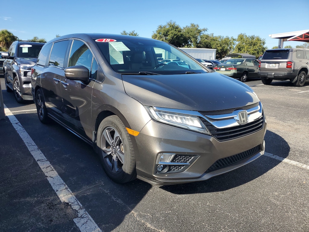 2018 Honda Odyssey 3.5L V6 SOHC i-VTEC 24V Gray This vehicle also comes equipped with: 18 Machine-Finished Alloy Wheels, 3.61 Axle Ratio, 3rd row seats: split-bench, 4-Wheel Disc Brakes, 7 Speakers, A/V remote, ABS brakes, Air Conditioning, Alloy wheels, AM/FM radio: SiriusXM, Anti-whiplash front head restraints, Apple CarPlay/Android Auto, Auto High-beam Headlights, Auto-dimming Rear-View mirror, Automatic temperature control, Blind Spot Information (BSI) System warning, Brake assist, Bumpers: body-color, CD player, Compass, Delay-off headlights, Driver door bin, Driver vanity mirror, Driver's Seat Mounted Armrest, Dual front impact airbags, Dual front side impact airbags, DVD-Audio, Electronic Stability Control, Emergency communication system: HondaLink, Exterior Parking Camera Rear, Four wheel independent suspension, Front anti-roll bar, Front Bucket Seats, Front dual zone A/C, Front fog lights, Front reading lights, Fully automatic headlights, Garage door transmitter: HomeLink, Headphones, Heated door mirrors, Heated Front Bucket Seats, Heated front seats, Illuminated entry, Knee airbag, Leather Seat Trim, Leather steering wheel, Low tire pressure warning, Memory seat, Navigation system: Honda Satellite-Linked Navigation System, Occupant sensing airbag, Outside temperature display, Overhead airbag, Overhead console, Panic alarm, Passenger door bin, Passenger seat mounted armrest, Passenger vanity mirror, Power door mirrors, Power driver seat, Power Liftgate, Power moonroof, Power passenger seat, Power steering, Power windows, Radio data system, Radio: 160-Watt AM/FM/HD/SiriusXM Audio System, Rear air conditioning, Rear anti-roll bar, Rear audio controls, Rear reading lights, Rear seat center armrest, Rear window defroster, Rear window wiper, Reclining 3rd row seat, Remote keyless entry, Security system, Speed control, Speed-sensing steering, Speed-Sensitive Wipers, Split folding rear seat, Spoiler, Steering wheel mounted audio controls, Tachometer, Telescoping steering wheel, Tilt steering wheel, Traction control, Trip computer, Turn signal indicator mirrors, and Variably intermittent wipers. FWD 10-Speed Automatic Recent Arrival! 19/28 City/Highway MPG