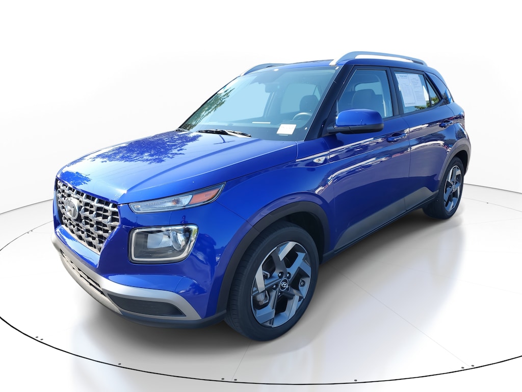 This Vehicle includes the following Options and Features Option Group 01, Venue SEL, 4D Sport Utility, I4, CVT, FWD, Intense Blue, Black Cloth, 4-Wheel Disc Brakes, 6 Speakers, 6.052 Axle Ratio, 6.5J x 17" Alloy Wheels, ABS brakes, Air Conditioning, Alloy wheels, AM/FM radio, Apple CarPlay & Android Auto, Auto High-beam Headlights, Automatic temperature control, Brake assist, Bumpers: body-color, Cloth Seat Trim, Delay-off headlights, Driver door bin, Driver vanity mirror, Dual front impact airbags, Dual front side impact airbags, Electronic Stability Control, Front anti-roll bar, Front Bucket Seats, Front Center Armrest, Front reading lights, Front wheel independent suspension, Fully automatic headlights, Illuminated entry, Leather Shift Knob, Leather steering wheel, Low tire pressure warning, Occupant sensing airbag, Outside temperature display, Overhead airbag, Overhead console, Panic alarm, Passenger door bin, Passenger vanity mirror, Power door mirrors, Power moonroof, Power steering, Power windows, Radio: AM/FM/HD Display Audio, Rear window defroster, Rear window wiper, Remote keyless entry, Roof rack: rails only, Security system, Speed control, Speed-sensing steering, Split folding rear seat, Spoiler, Steering wheel mounted audio controls, Tachometer, Telescoping steering wheel, Tilt steering wheel, Traction control, Trip computer, and Variably intermittent wipers.