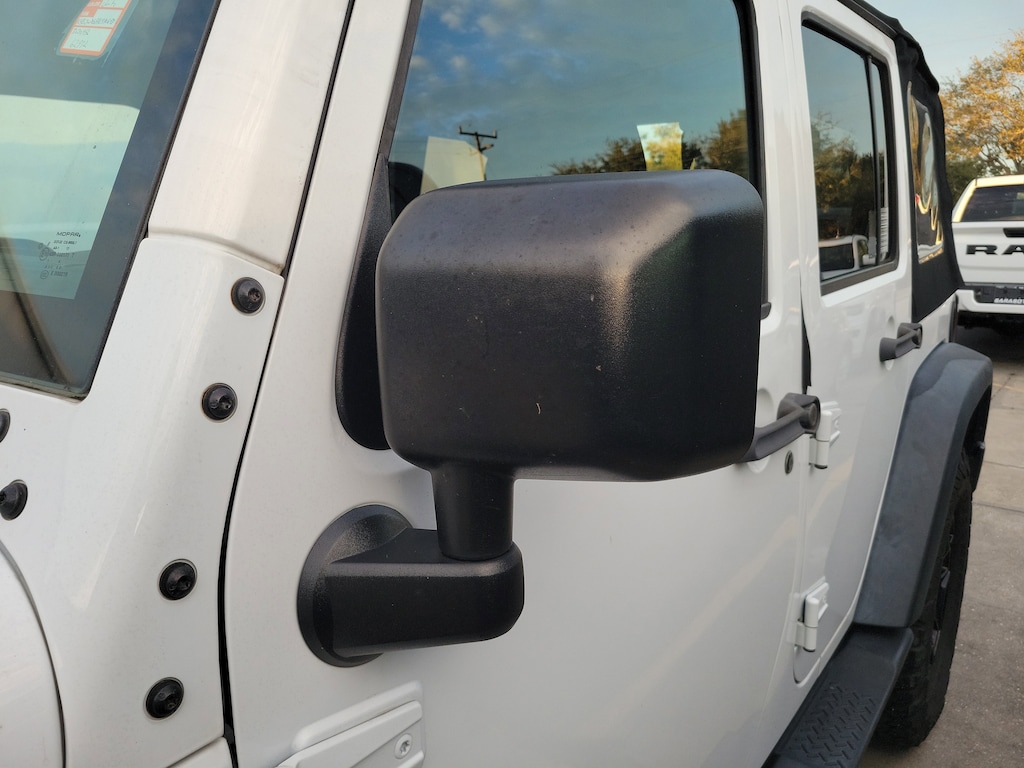THIS VEHICLE INCLUDES THE FOLLOWING FEATURES AND OPTIONS: Connectivity Group (Remote USB Port, Tire Pressure Monitoring Display, Uconnect Voice Command w/Bluetooth, and Vehicle Information Center), LED Lighting Group (LED Fog Lamps and LED Reflector Headlamps), Max Tow Package (Class II Receiver Hitch and Trailer Tow w/4-Pin Connector Wiring), Quick Order Package 24W Willys Wheeler (1-Yr SiriusXM Radio Service, 4-Wheel Drive Swing Gate Decal, Anti-Spin Differential Rear Axle, Auto-Dimming Mirror w/Reading Lamp, Black Jeep Grille Badge, Deep Tint Sunscreen Windows, Front 1-Touch Down Power Windows, Jeep Trail Rated Kit, MOPAR Slush Mats, Performance Suspension, Power Convenience Group, Power Heated Mirrors, Power Locks, Rear Passenger Assist Handles Kit, Remote Keyless Entry, Security Alarm, SIRIUS Satellite Radio, Wheels: 17" x 7.5" High Gloss Black Willys, Willys Hood Decal, and Willys Wheeler Grille), Willys Wheeler Package, 16" x 7.0" Luxury Styled Steel Wheels, 4-Wheel Disc Brakes, 8 Speakers, ABS brakes, Air Conditioning, AM/FM radio, Brake assist, CD player, Cloth Seats w/Adjustable Head Restraints, Compass, Driver door bin, Driver vanity mirror, Dual front impact airbags, Electronic Stability Control, Front anti-roll bar, Front Bucket Seats, Front Center Armrest w/Storage, Front fog lights, Integrated roll-over protection, Low tire pressure warning, Normal Duty Suspension, Occupant sensing airbag, Outside temperature display, Passenger door bin, Passenger vanity mirror, Power steering, Premium Black Sunrider Soft Top, Radio: 130, Radio: 430, Rear anti-roll bar, Speed control, Split folding rear seat, Steering wheel mounted audio controls, Tachometer, Tilt steering wheel, Traction control, Trip computer, and Variably intermittent wipers.