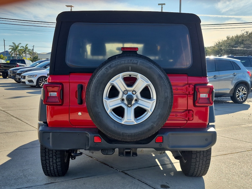 THIS VEHICLE INCLUDES THE FOLLOWING FEATURES AND OPTIONS: Convenience Group (Universal Garage Door Opener), Quick Order Package 24S Sport S (Automatic Headlamps, Deep Tint Sunscreen Windows, Front 1-Touch Down Power Windows, Leather Wrapped Steering Wheel, Power Heated Mirrors, Remote Keyless Entry, Security Alarm, Speed Sensitive Power Locks, Sun Visors w/Illuminated Vanity Mirrors, and Wheels: 17" x 7.5" Tech Silver Aluminum), Safety Group (Blind Spot & Cross Path Detection, Injection Molded Black Rear Bumper, LED Taillamps, and ParkSense Rear Park Assist System), Technology Group (1-Yr SiriusXM Radio Service, 7.0" Touchscreen Display, Air Conditioning w/Auto Temperature Control, Air Filtering, Apple CarPlay, Cluster 7.0" TFT Color Display, For More Info, Call 800-643-2112, Google Android Auto, GPS Antenna Input, Integrated Center Stack Radio, Radio: Uconnect 4 w/7" Display, SiriusXM Satellite Radio, and USB Host Flip), Trailer Tow & HD Electrical Group (240 Amp Alternator, 7 & 4 Pin Wiring Harness, 700 Amp Maintenance Free Battery, Auxiliary Switches, and Class II Receiver Hitch), 3.45 Rear Axle Ratio, 4-Wheel Disc Brakes, 8 Speakers, ABS brakes, Air Conditioning, AM/FM radio, Brake assist, Cloth Low-Back Bucket Seats, Compass, Delay-off headlights, Driver door bin, Driver vanity mirror, Dual front impact airbags, Dual front side impact airbags, Electronic Stability Control, Front anti-roll bar, Front Bucket Seats, Front Center Armrest w/Storage, Front fog lights, Front reading lights, Integrated roll-over protection, Low tire pressure warning, Manufacturer's Statement of Origin (DISC), Non-Lock Fuel Cap w/o Discriminator, Normal Duty Suspension, Occupant sensing airbag, Outside temperature display, ParkView Rear Back-Up Camera, Passenger door bin, Passenger vanity mirror, Power steering, Premium Black Sunrider Soft Top, Radio data system, Radio: Uconnect 3 w/5" Display, Rear anti-roll bar, Rear reading lights, Speed control, Split folding rear seat, Steering wheel mounted audio controls, Tachometer, Telescoping steering wheel, Tilt steering wheel, Traction control, Trip computer, Variably intermittent wipers, and Wheels: 17" x 7.5" Black Steel Styled.