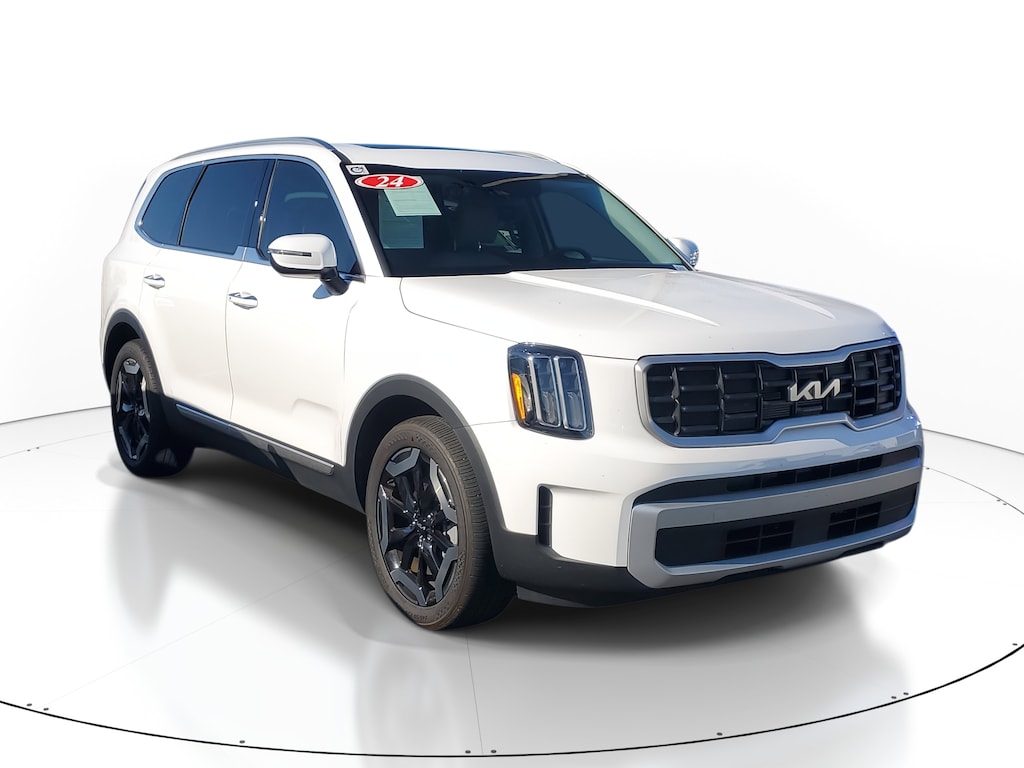 2024 Kia Telluride 3.8L V6 DOHC Glacial White Pearl This vehicle also comes equipped with: S Sunroof Package (Power Sunroof w/Sunshade), 3.510 Axle Ratio, 3rd row seats: split-bench, 4-Wheel Disc Brakes, 6 Speakers, ABS brakes, Air Conditioning, Alloy wheels, AM/FM radio: SiriusXM, Apple CarPlay & Android Auto, Auto High-beam Headlights, Automatic temperature control, Brake assist, Bumpers: body-color, Carpet Floor Mats, Delay-off headlights, Driver door bin, Driver vanity mirror, Dual front impact airbags, Dual front side impact airbags, Electrochromic Mirror w/HomeLink & Compass, Electronic Stability Control, Emergency communication system: 911 Connect, Exterior Parking Camera Rear, Four wheel independent suspension, Front anti-roll bar, Front Bucket Seats, Front Center Armrest, Front dual zone A/C, Front reading lights, Fully automatic headlights, Heated door mirrors, Heated Front Bucket Seats, Heated front seats, Illuminated entry, Knee airbag, Leather Shift Knob, Leather steering wheel, Low tire pressure warning, Navigation System, Occupant sensing airbag, Outside temperature display, Overhead airbag, Overhead console, Panic alarm, Passenger door bin, Passenger vanity mirror, Power door mirrors, Power driver seat, Power steering, Power windows, Radio data system, Radio: AM/FM Display Audio System, Rear air conditioning, Rear anti-roll bar, Rear audio controls, Rear reading lights, Rear side impact airbag, Rear window defroster, Rear window wiper, Reclining 3rd row seat, Remote keyless entry, Roof rack: rails only, Security system, Smart Key w/ Push Button and Remote Start, Speed control, Speed-sensing steering, Split folding rear seat, Spoiler, Steering wheel mounted audio controls, SynTex Synthetic Leather Seat Trim, Tachometer, Telescoping steering wheel, Tilt steering wheel, Traction control, Trip computer, Turn signal indicator mirrors, Variably intermittent wipers, and Wheels: 20 x 7.5 Black Finish. FWD 8-Speed Automatic Recent Arrival! Odometer is 28638 miles below market average! 20/26 City/Highway MPG