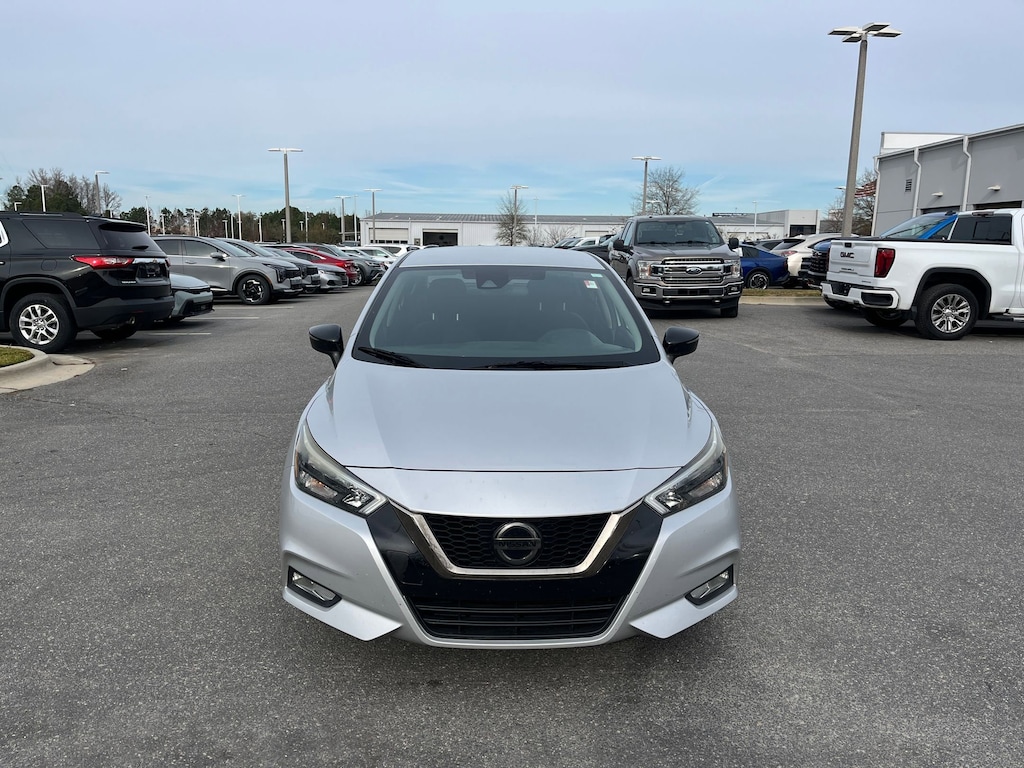 This vehicle comes equipped with : 17" Alloy Wheels, 6 Speakers, ABS brakes, Air Conditioning, Alloy wheels, AM/FM radio: SiriusXM, Auto High-beam Headlights, Automatic temperature control, Blind Spot Warning, Brake assist, Bumpers: body-color, Carpeted Floor Mats (5-Piece Set), Delay-off headlights, Driver door bin, Driver vanity mirror, Dual front impact airbags, Dual front side impact airbags, Electronic Stability Control, Front anti-roll bar, Front Bucket Seats, Front fog lights, Front reading lights, Front wheel independent suspension, Fully automatic headlights, Heated door mirrors, Illuminated entry, Knee airbag, Leather Shift Knob, Leather steering wheel, Low tire pressure warning, NissanConnect featuring Apple CarPlay and Android Auto, Occupant sensing airbag, Outside temperature display, Overhead airbag, Panic alarm, Passenger door bin, Passenger vanity mirror, Power door mirrors, Power steering, Power windows, Radio data system, Radio: AM/FM Audio System, Rear side impact airbag, Rear window defroster, Remote keyless entry, Speed control, Splash Guards, Split folding rear seat, Spoiler, SR Fabric Seat Trim, Steering wheel mounted audio controls, Tachometer, Telescoping steering wheel, Tilt steering wheel, Traction control, Trip computer, Turn signal indicator mirrors, and Variably intermittent wipers.