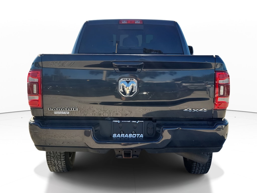 THIS VEHICLE INCLUDES THE FOLLOWING FEATURES AND OPTIONS: Laramie Level 1 Equipment Group (DISC) (Auto High Beam Headlamp Control, Blind Spot & Cross Path Detection (DISC), Exterior Mirrors w/Memory, Foam Bottle Insert (Door Trim Panel), Mirror-Mounted Aux Reverse Lamps, Power Adjustable Convex Aux Mirrors, Power Adjustable Pedals w/Memory, Pwr Convenience Chrome Tow Mirrors w/Spotter & Memory, Radio/Driver Seat/Mirrors/Pedals Memory, Rain Sensitive Windshield Wipers, Remote Tailgate Release, and Ventilated Front Seats), Quick Order Package 2HH Laramie, Sport Appearance Package (Black Interior Accents, Body Color Door Handles, Body Color Grille Surround, Painted Front Bumper, Painted Rear Bumper, and Sport Decal), #1 Seat Foam Cushion, 10 Speakers, 115V Auxiliary Rear Power Outlet, 12" Touchscreen Display, 2 Way Rear Headrest Seat, 220 Amp Alternator, 3.73 Axle Ratio, 4 Way Front Headrests, 4-Wheel Disc Brakes, 5th Wheel/Gooseneck Towing Prep Group, 8.4" Touchscreen Display, ABS brakes, Active Noise Control System, Adjustable pedals, Air Conditioning, Alloy wheels, AM/FM radio: SiriusXM, Anti-Spin Differential Rear Axle, Apple CarPlay, Apple CarPlay/Android Auto, Auto-dimming Rear-View mirror, Automatic temperature control, Brake assist, Bumpers: chrome, Center Hub, Compass, Delay-off headlights, Driver door bin, Driver vanity mirror, Dual front impact airbags, Dual front side impact airbags, Electronic Stability Control, Electronically Controlled Throttle, Front anti-roll bar, Front Center Armrest w/Storage, Front dual zone A/C, Front fog lights, Front reading lights, Front Seat Back Map Pockets, Fully automatic headlights, Garage door transmitter, Google Android Auto, GPS Antenna Input, Heated door mirrors, Heated Front Seats, Heated front seats, Heated Steering Wheel, Heated steering wheel, High Back Seats, Illuminated entry, Integrated Center Stack Radio, Integrated Voice Command w/Bluetooth, Leather steering wheel, Leather Trim 40/20/40 Bench Seat, Low tire pressure warning, Occupant sensing airbag, Outside temperature display, Overhead airbag, Overhead console, Panic alarm, ParkView Rear Back-Up Camera, Passenger door bin, Passenger vanity mirror, Power 2-Way Driver Lumbar Adjust, Power 2-Way Passenger Lumbar Adjust, Power Adjust 8-Way Driver Seat, Power Adjust 8-Way Front Passenger Seat, Power door mirrors, Power driver seat, Power passenger seat, Power steering, Power windows, Radio data system, Radio: Uconnect 12 w/Navigation, Radio: Uconnect 4 w/8.4" Display, Rear 60/40 Folding Seat, Rear anti-roll bar, Rear reading lights, Rear seat center armrest, Rear step bumper, Rear window defroster, Remote keyless entry, Security system, Selectable Tire Fill Alert, SiriusXM Satellite Radio, SiriusXM w/360L, Speed control, Split folding rear seat, Steering wheel mounted audio controls, Tachometer, Tilt steering wheel, Tip Start, Tow Hooks, Traction control, Trip computer, Turn signal indicator mirrors, Variably intermittent wipers, Vendor Painted Cargo Box Tracking, Voltmeter, and Wheels: 18" x 8.0" Polished Aluminum.