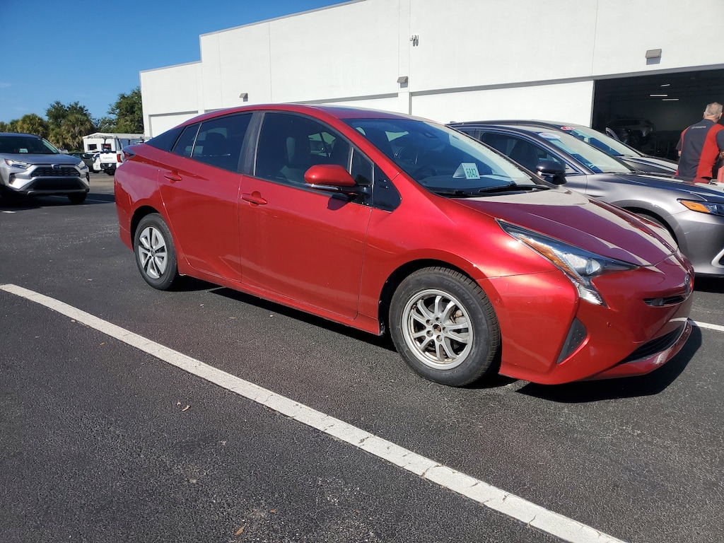 2018 Toyota Prius 1.8L 4-Cylinder DOHC 16V VVT-i Red 1.8L 4-Cylinder DOHC 16V VVT-i. This vehicle also comes equipped with: 1.8L 4-Cylinder DOHC 16V VVT-i, 4-Wheel Disc Brakes, 6 Speakers, ABS brakes, Air Conditioning, Alloy wheels, AM/FM radio: SiriusXM, Auto High-beam Headlights, Automatic temperature control, Blind Spot Monitor (BSM), Brake assist, Bumpers: body-color, CD player, Delay-off headlights, Driver door bin, Driver vanity mirror, Dual front impact airbags, Dual front side impact airbags, Electronic Stability Control, Exterior Parking Camera Rear, Fabric Seat Trim, Four wheel independent suspension, Front anti-roll bar, Front Bucket Seats, Front Center Armrest, Front reading lights, Fully automatic headlights, Heated door mirrors, Illuminated entry, Intelligent Clearance Sonar (ICS), Knee airbag, Low tire pressure warning, Navigation System, Occupant sensing airbag, Outside temperature display, Overhead airbag, Overhead console, Panic alarm, Passenger door bin, Passenger vanity mirror, Power door mirrors, Power steering, Power windows, Radio: Entune Premium Audio w/Navigation/App Suite, Rear anti-roll bar, Rear seat center armrest, Rear window defroster, Rear window wiper, Remote keyless entry, Speed control, Split folding rear seat, Steering wheel mounted audio controls, Telescoping steering wheel, Tilt steering wheel, Traction control, Trip computer, Variably intermittent wipers, and Wheels: 6.5J x 15 5-Spoke Aluminum Alloy. FWD CVT Recent Arrival! 54/50 City/Highway MPG