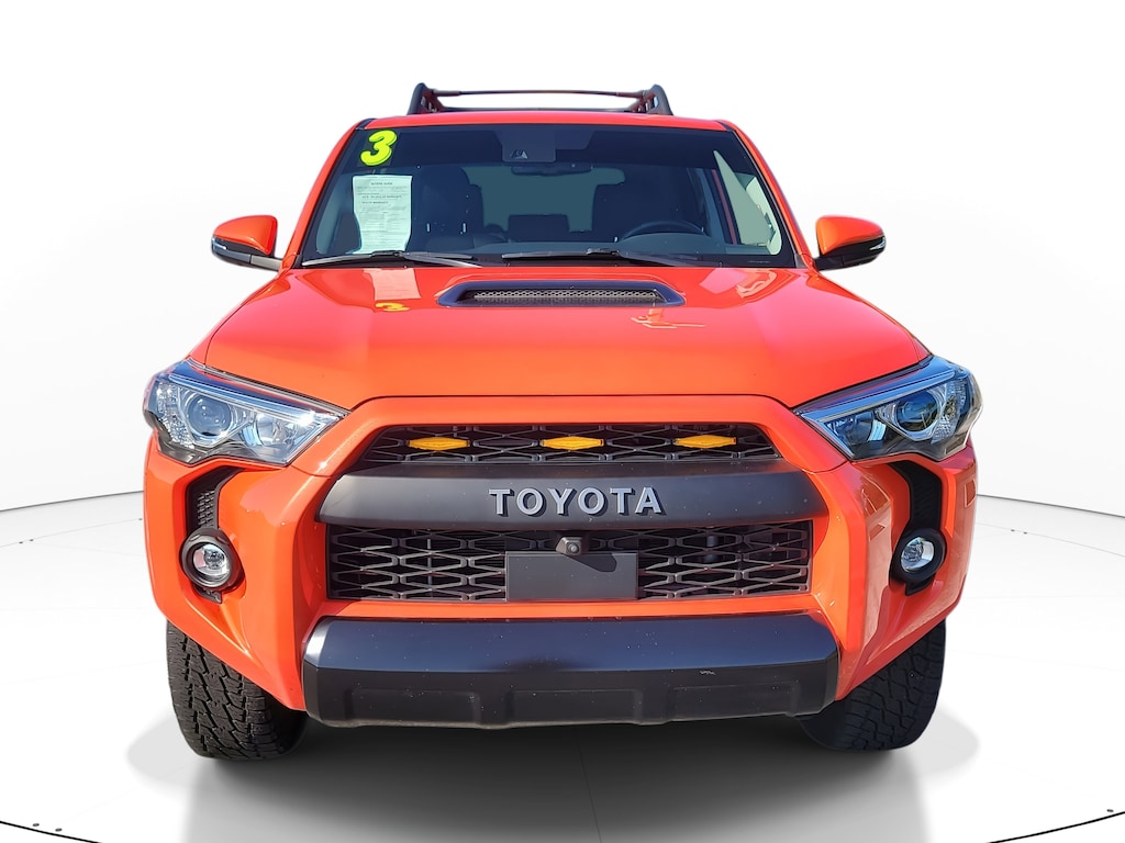 This Vehicle is nicely equipped with the following features: 4WD, Blackgraphite S Artificial Leather, 15 Speakers, 3.727 Axle Ratio, 4-Wheel Disc Brakes, ABS brakes, Air Conditioning, Alloy wheels, AM/FM radio: SiriusXM, Anti-whiplash front head restraints, Apple CarPlay/Android Auto, Auto High-beam Headlights, Auto-dimming Rear-View mirror, Automatic temperature control, Black Lug Nuts, Brake assist, Bumpers: body-color, Compass, Driver door bin, Driver vanity mirror, Dual front impact airbags, Dual front side impact airbags, Dual Zone Auto Climate Control, Electronic Stability Control, Emergency communication system: Safety Connect (1-year trial), Fog Lights, Fox Shocks, Front anti-roll bar, Front Bucket Seats, Front Center Armrest, Front dual zone A/C, Front fog lights, Front reading lights, Front wheel independent suspension, Garage Door Opener, Garage door transmitter: HomeLink, Heated door mirrors, Heated Front Bucket Seats, Heated front seats, Heated Outside Rear-View Mirrors, Illuminated entry, Knee airbag, Leather Shift Knob, Low tire pressure warning, Moonroof w/Tilt Up & Slide, Multi-Terrain Back Monitor, Navigation System, Occupant sensing airbag, Outside temperature display, Overhead airbag, Overhead console, Panic alarm, Passenger door bin, Passenger vanity mirror, Power door mirrors, Power driver seat, Power moonroof, Power passenger seat, Power steering, Power windows, Radio: Premium Audio w/JBL, Rear anti-roll bar, Rear seat center armrest, Rear window defroster, Rear window wiper, Remote keyless entry, Roof rack, Roof Rack, Security system, SofTex Seat Trim, Speed control, Speed-sensing steering, Split folding rear seat, Spoiler, Steering wheel mounted audio controls, Tachometer, Telescoping steering wheel, Tilt steering wheel, Traction control, TRD Pro All Weather Floor Liner, TRD Pro Badging, TRD Pro Exhaust, TRD Shift Knob, Trip computer, Variably intermittent wipers, Wheel Locks, and Wheels: 17" Matte Black Flow-Formed TRD Alloy.