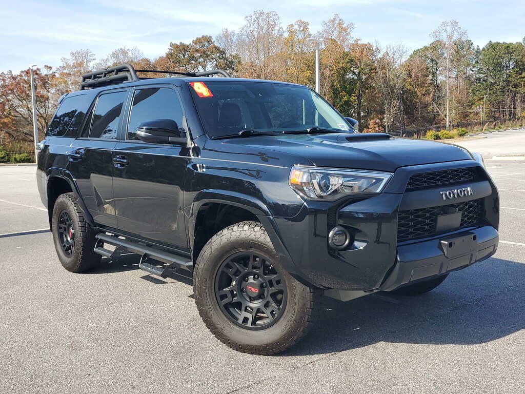 This Vehicle is nicely equipped with the following features: 4WD, 15 Speakers, 3.727 Axle Ratio, 4-Wheel Disc Brakes, ABS brakes, Air Conditioning, Alloy wheels, AM/FM radio: SiriusXM, Anti-whiplash front head restraints, Apple CarPlay/Android Auto, Auto High-beam Headlights, Auto-dimming Rear-View mirror, Automatic temperature control, Black Lug Nuts, Brake assist, Bumpers: body-color, Compass, Driver door bin, Driver vanity mirror, Dual front impact airbags, Dual front side impact airbags, Dual Zone Auto Climate Control, Electronic Stability Control, Emergency communication system: Safety Connect (1-year trial), Exterior Parking Camera Rear, Fog Lights, Fox Shocks, Front anti-roll bar, Front Bucket Seats, Front Center Armrest, Front dual zone A/C, Front fog lights, Front reading lights, Front wheel independent suspension, Garage Door Opener, Garage door transmitter: HomeLink, Heated door mirrors, Heated Front Bucket Seats, Heated front seats, Heated Outside Rear-View Mirrors, Heated steering wheel, Illuminated entry, Knee airbag, Leather Shift Knob, Low tire pressure warning, Moonroof w/Tilt Up & Slide, Multi-Terrain Back Monitor, Navigation System, Occupant sensing airbag, Outside temperature display, Overhead airbag, Overhead console, Panic alarm, Passenger door bin, Passenger vanity mirror, Power door mirrors, Power driver seat, Power moonroof, Power passenger seat, Power steering, Power windows, Radio: Premium Audio w/JBL, Rear anti-roll bar, Rear seat center armrest, Rear window defroster, Rear window wiper, Remote keyless entry, Roof rack, Roof Rack, Security system, SofTex Seat Trim, Speed control, Speed-sensing steering, Split folding rear seat, Spoiler, Steering wheel mounted audio controls, Tachometer, Telescoping steering wheel, Tilt steering wheel, Traction control, TRD Pro All Weather Floor Liner, TRD Pro Badging, TRD Pro Exhaust, TRD Shift Knob, Trip computer, Variably intermittent wipers, Wheel Locks, and Wheels: 17 Matte Black Flow-Formed TRD Alloy.