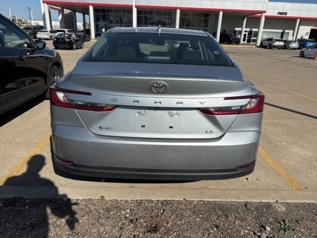 Silver 2025 Toyota Camry LE FWD eCVT 2.5L 4-Cylinder 16V DOHC 2.5L 4-Cylinder 16V DOHC, Black Cloth.